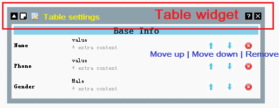 Table WidgetTable widget is a special type of widget which is able to have a set of 'field widget' in.