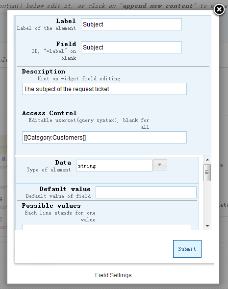 * This type will appear when Widgets extension is deployed to site. Default field widgetField widget is the default widget type. Each widget is bound to a field / semantic property.